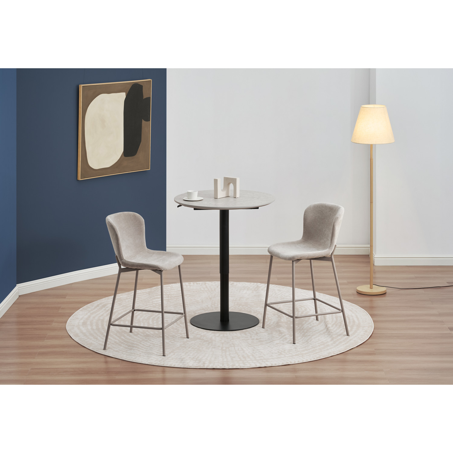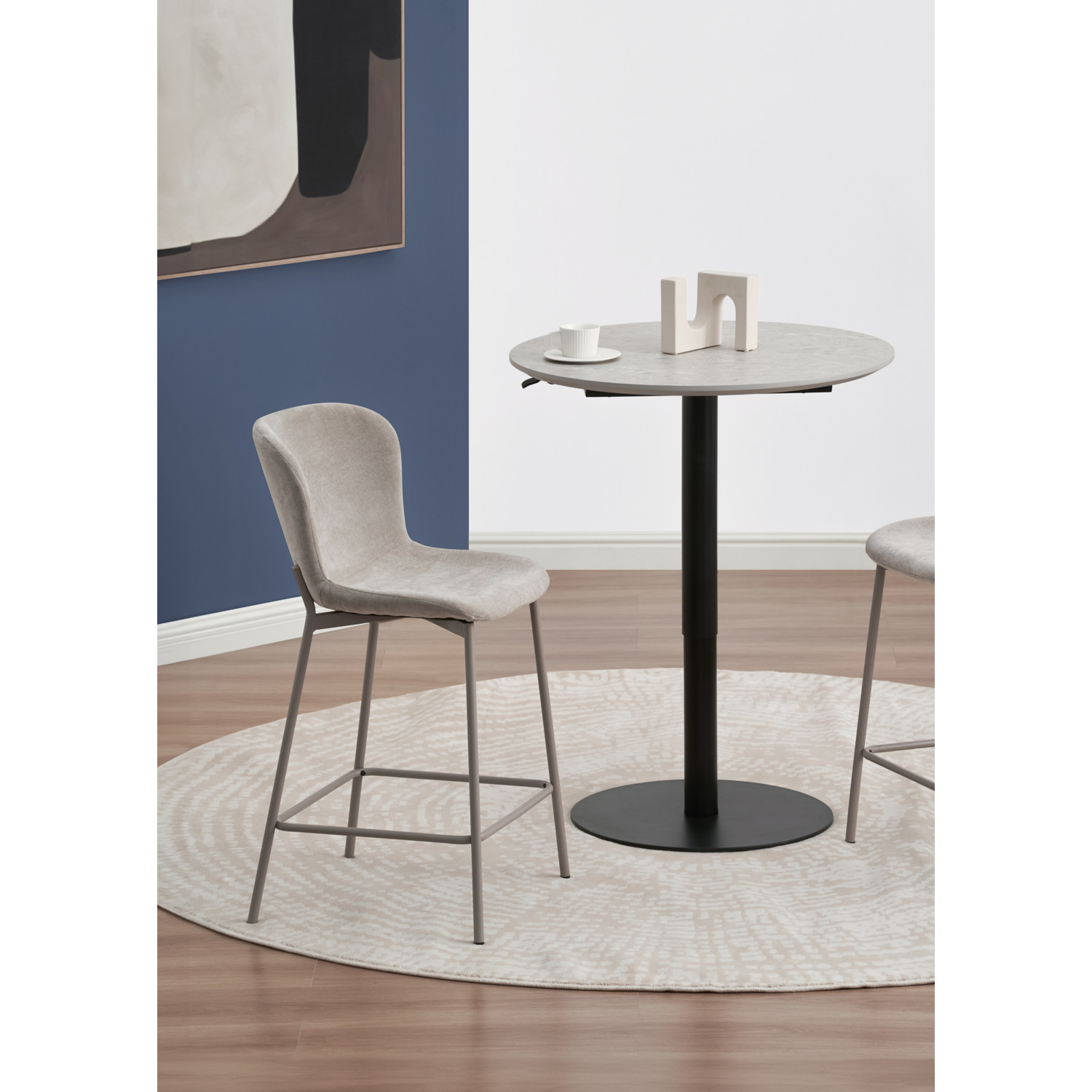 NOBI DIA 800 ADJUSTABLE DINING/COUNTER TABLE 802/187(#) 802 MATT BLACK EPOXY 187 GREY MARBLE